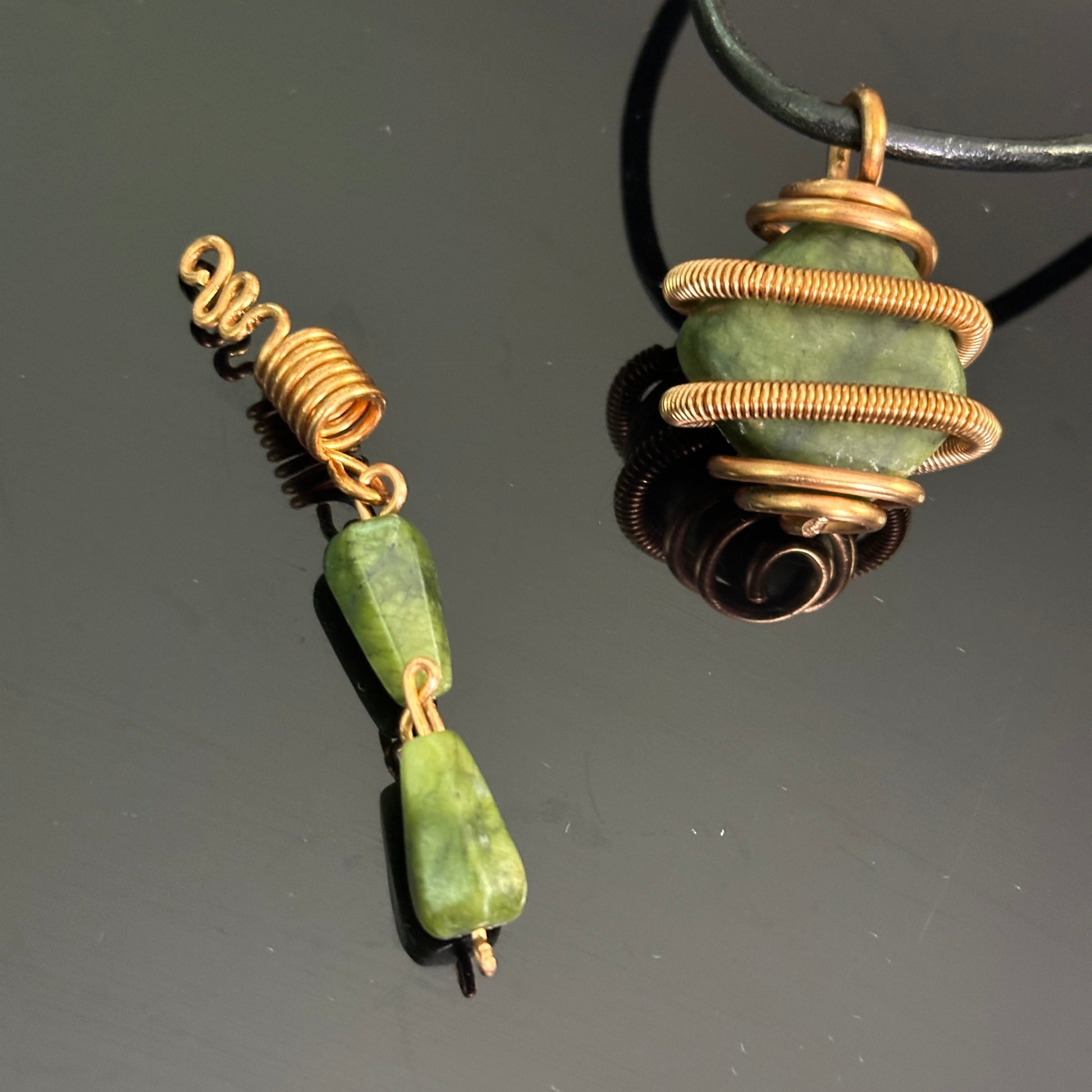 Royal energy meets grounded grace. The crowned in Jade Set features a hand-wrapped Jade pendant paired with stunning copper hair jewelry, designed to align your heart, protect your peace, and amplify your natural glow.